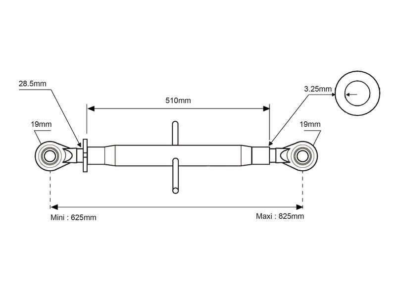 / 3º ponto (Cat.1/1 (Ø19/19mm)) Olhal and Olhal, 1-1/8, Comprimento minimo: 622mm.